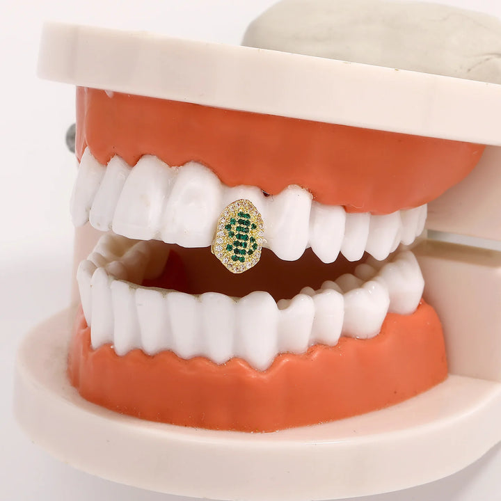 TOPGRILLZ El más nuevo único Dólares completo pedrería CZ dientes Grillz Bling Zircon tapas para dientes para Mujeres Hombres joyería Dental