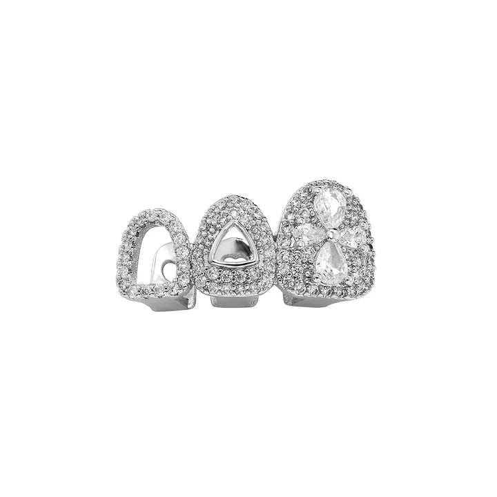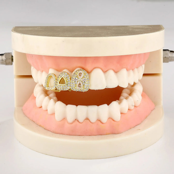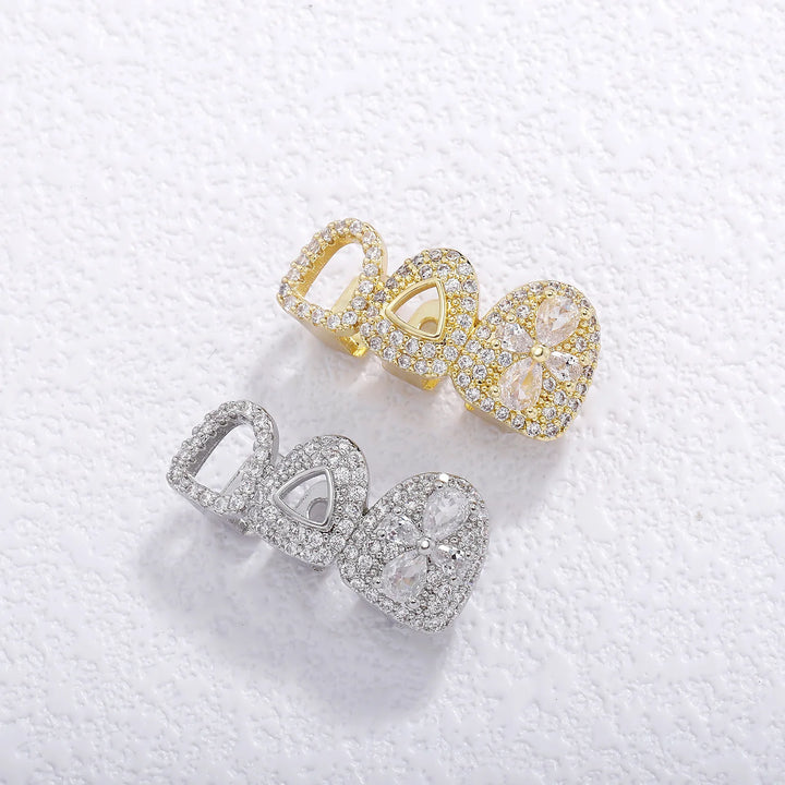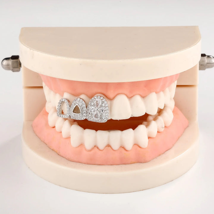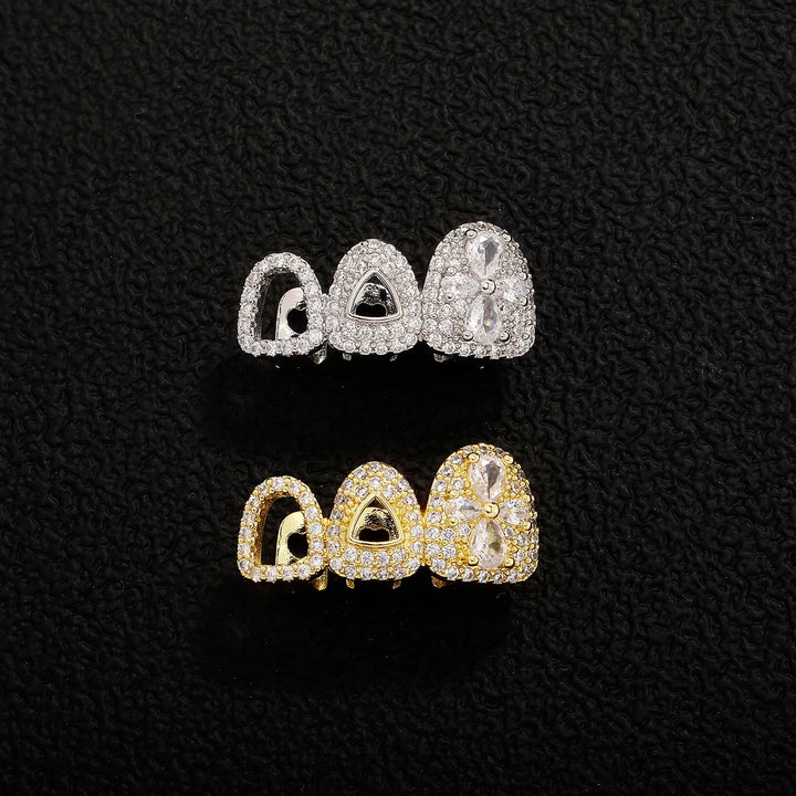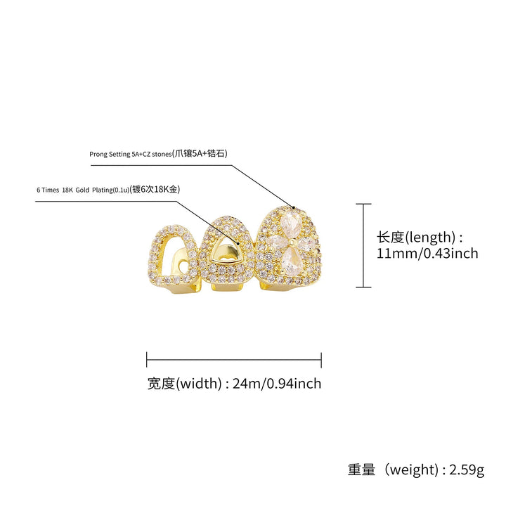 RACHELZ Vintage 3 holle volledige CZ stenen tanden Grillz hiphop bloem charme zirkoon dant Caps voor dames heren sieraden paar cadeau